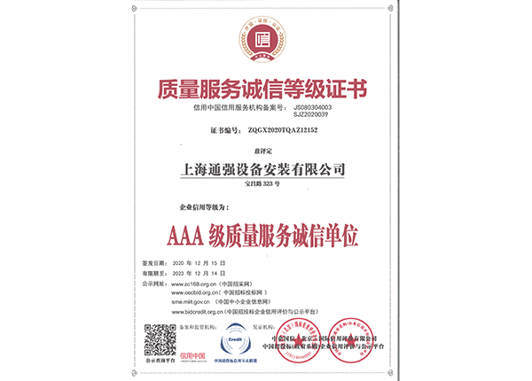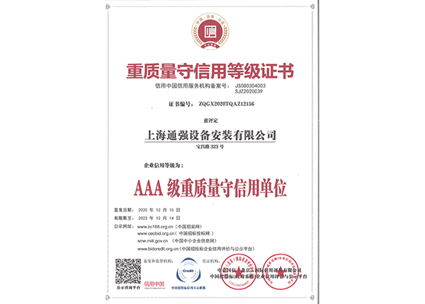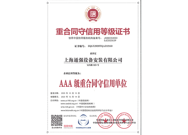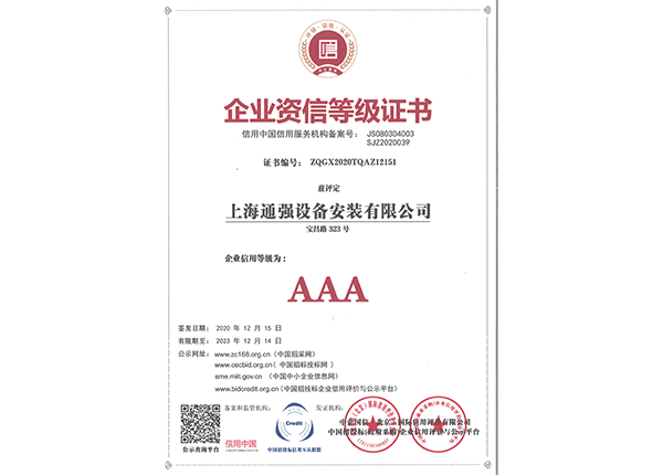 上海通強設(shè)備安裝有限公司注冊資金2000萬元,資產(chǎn)總量為100000萬元的專業(yè)設(shè)備安裝公司,公司專業(yè)從事工業(yè)與民用建筑的設(shè)備安裝、非標(biāo)設(shè)備的制作、鋼結(jié)構(gòu)制作安裝、中央空調(diào)系統(tǒng)的安裝,水電及管道的安裝。經(jīng)過20多年艱苦創(chuàng)業(yè)現(xiàn)已成為一個具有國家二級安裝資質(zhì),獲得上海市“重合同,守信用”的施工單位。